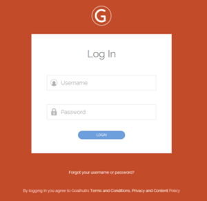- Navigate to the Goalhub login page https://app.goalhub.com/#/login and enter the username and password provided to you, in your registration confirmation email.