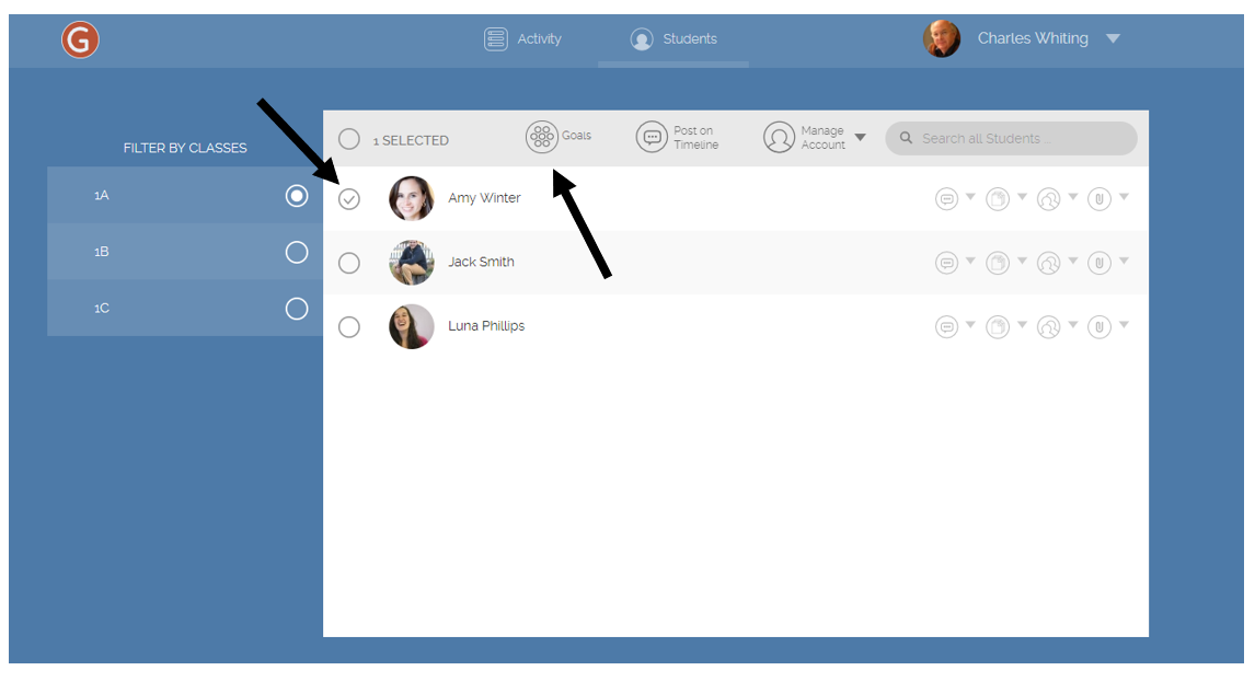 2. The suggested goal then appears on the student/mentee’s timeline as a goal to be achieved